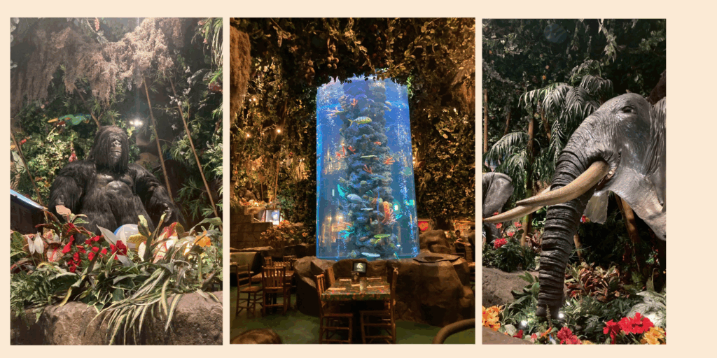 巨大な水槽🐟🐟や植物の中に動物がいたり、ジャングルのレストランです。入っただけで大喜び!大人もワクワク、ドキドキです💓