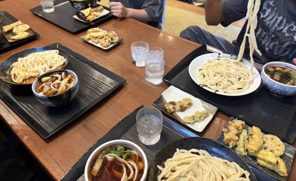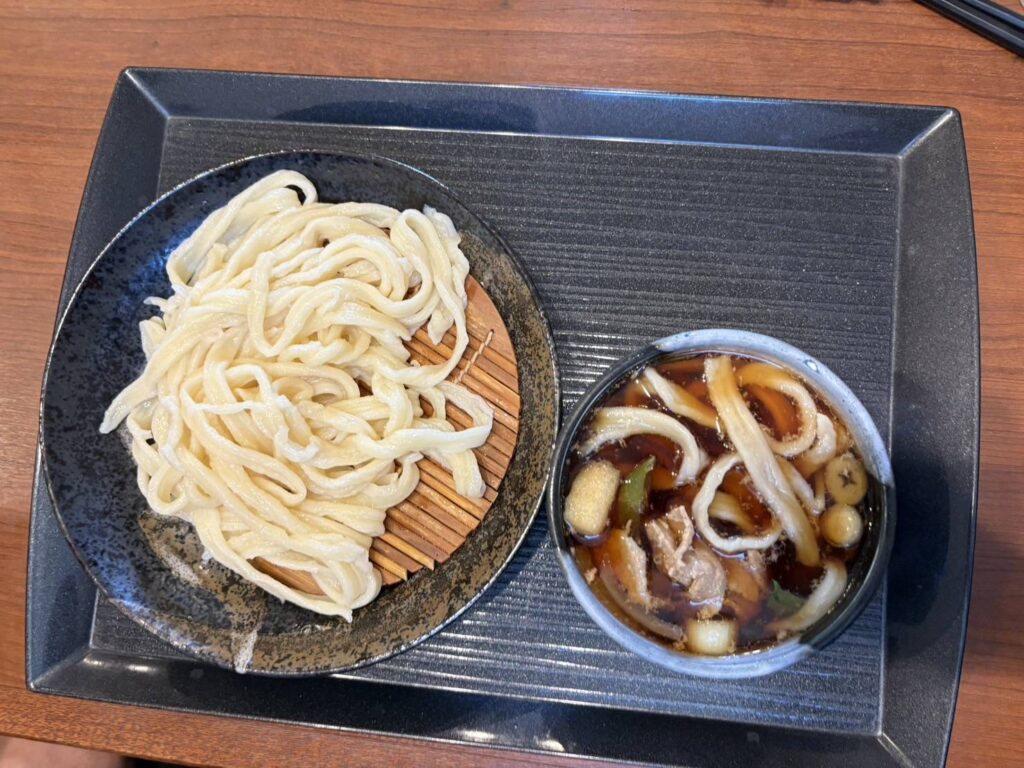 席につき、うどんを一口!とてもコシがありモチモチしていて美味しいうどん!!