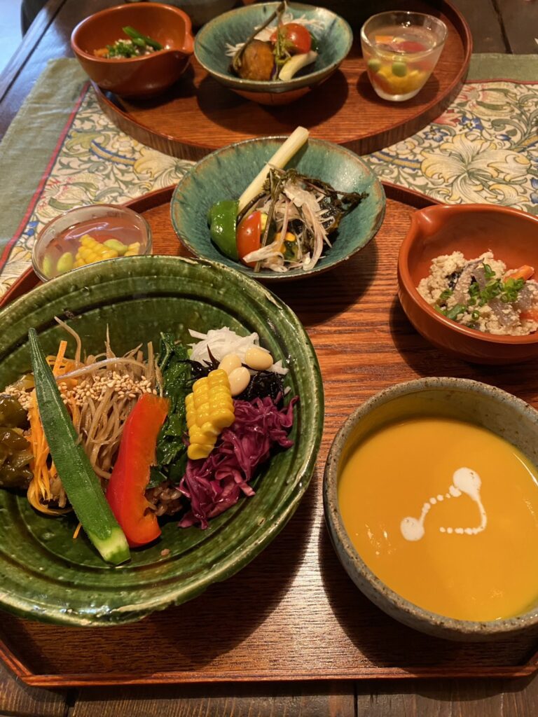 食器にもこだわっており、季節の野菜も取り入れ、色とりどりに盛り付けされています。